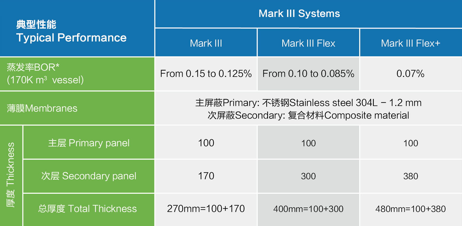 Mark lI薄膜系統是一種由船體結構直接支撐的絕緣結構設計,它由一個位于預制絕緣板頂部的主級波紋不銹鋼膜,和一個由復合材料制成的完整次級屏蔽膜組成。其主要的絕緣材料采用模塊化的預制組件,可以適應任何形狀和容量的儲罐。組件主要有平面板、角落板、頂橋板等。